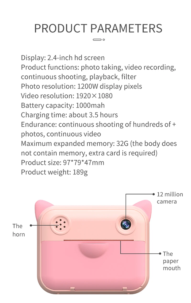 Buy Kid Instant Print Camera Thermal Printing Camera Digital Photo Camera For Girl's Toy Child Camera Video For Boy's Birthday Gift Right Here and Right Now, You will save money, do not let yourself be disappointed the next day, and immediately have Kid Instant Print Camera Thermal Printing Camera Digital Photo Camera For Girl's Toy Child Camera Video For Boy's Birthday Gift before the product is sold out.