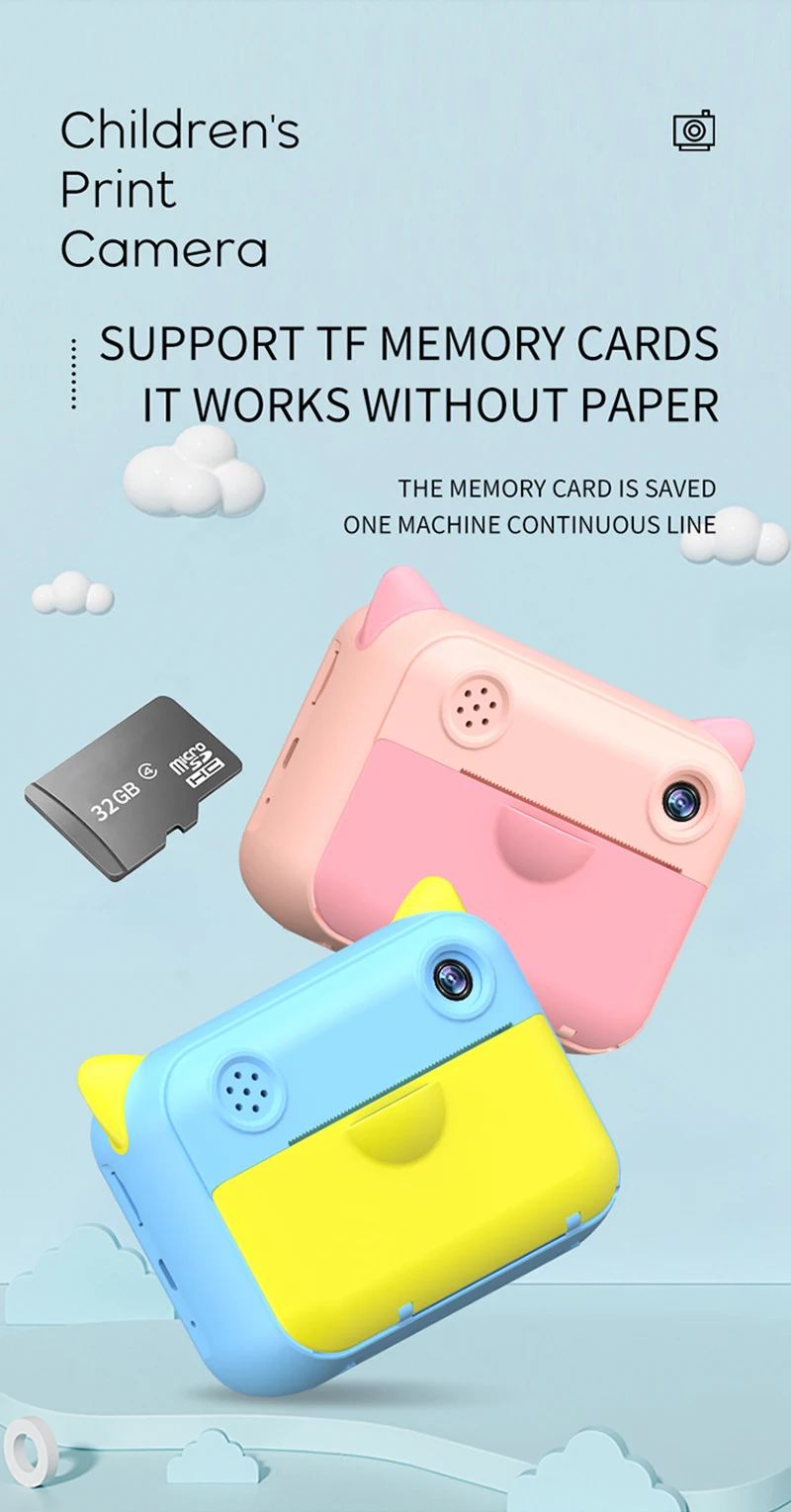 Children Camera Instant Print Camera For Girls Kids Camera Instantane With Thermal Photo Paper Toys Camera For Birthday Gifts